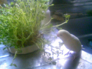 今日は私に病院につれていかれ採血やらなにやら検査づけにされるとも知らないで、豆苗(エンドウマメ)を貪っていやがるぜ!ふははは!!