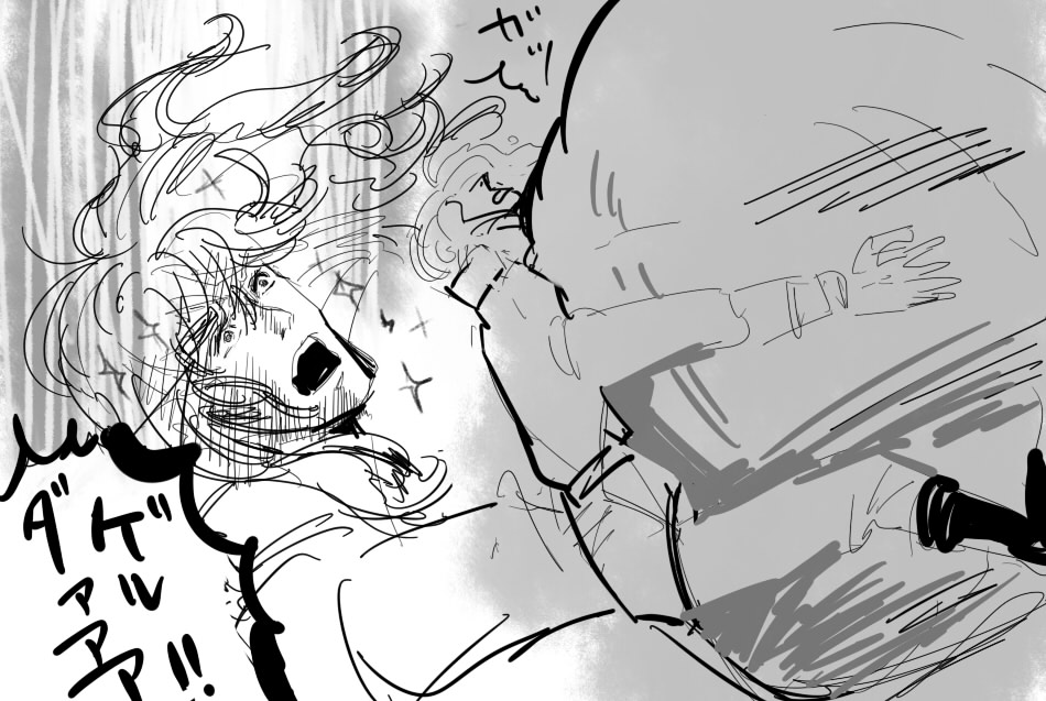 こんな格好で落ちて彼は一回本当に死んでしまうんですよね。